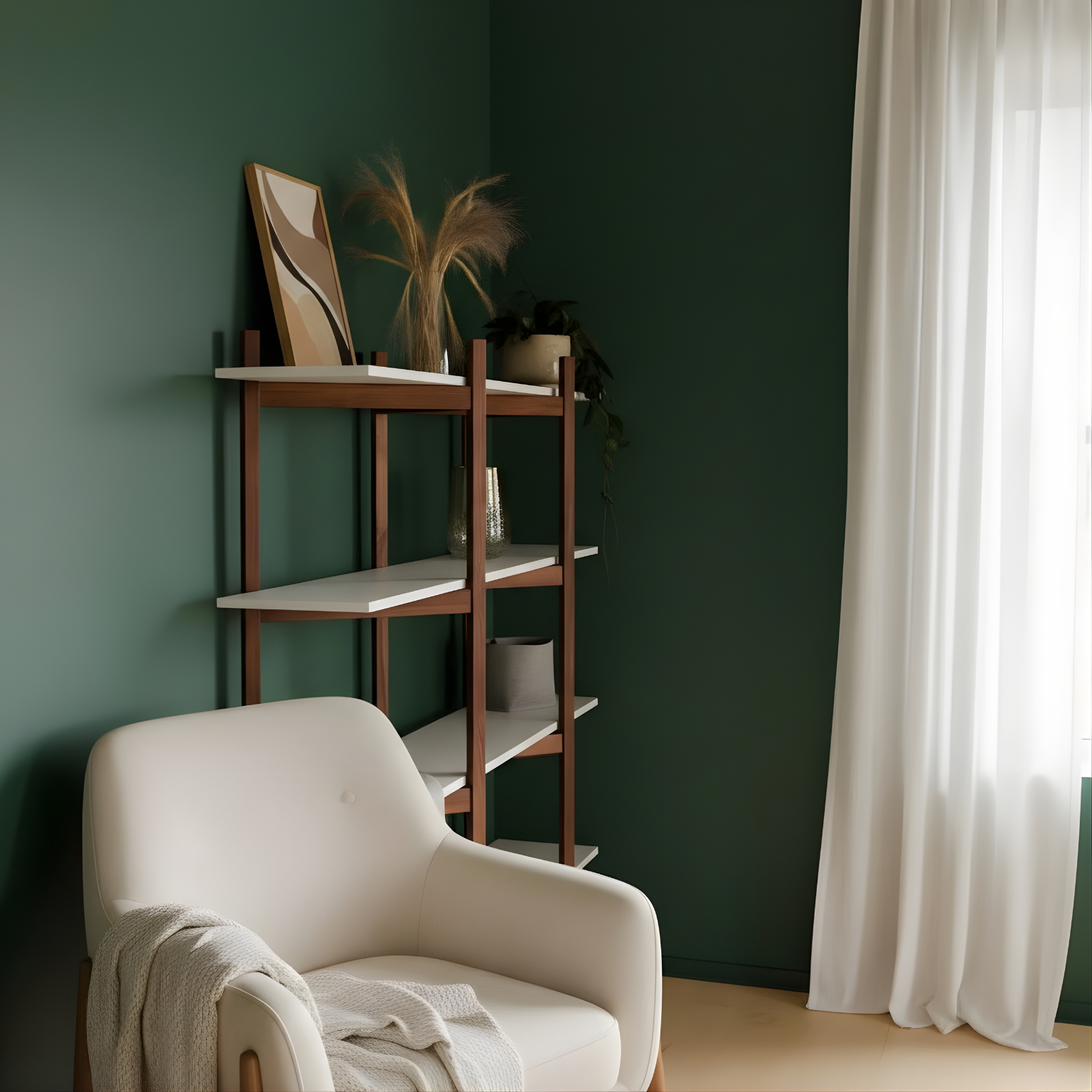 Verleihen Sie Ihrem Zuhause zeitloses Design mit diesem handgefertigten Regal im Mid-Century-Modern-Stil. Gefertigt aus hochwertigem Holz und in warmen, natürlichen Farbtönen gehalten, ist dieses Regal sowohl stilvoll als auch funktional. Seine klaren Linien und die geometrische Form machen es zum perfekten Blickfang für Wohnzimmer, Büro, Essbereich oder Eingangsbereich.
