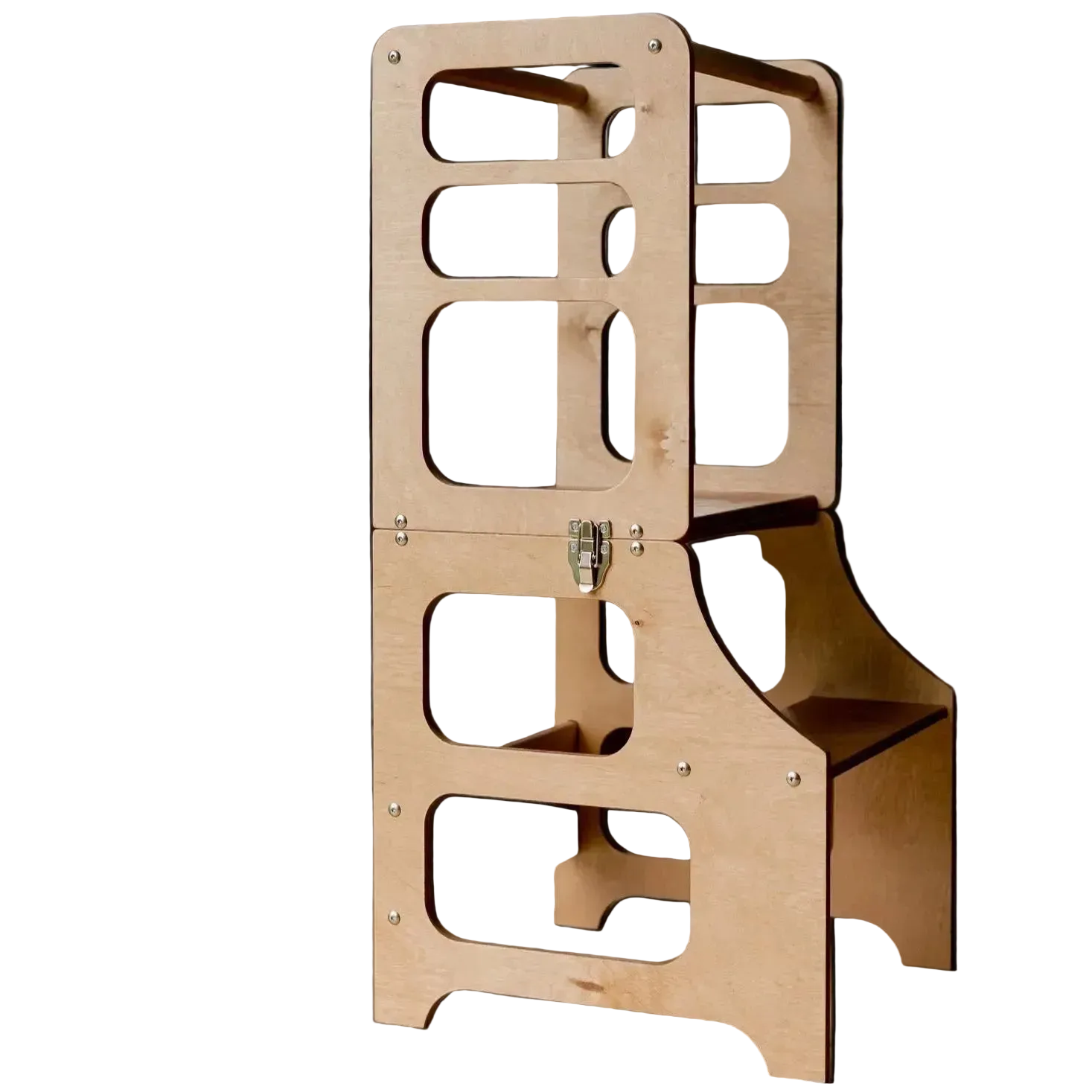 Unsere Küchentürme sind so konzipiert, dass sie Kleinkinder sicher auf Arbeitsplattenhöhe heben und ihnen so die Teilnahme an alltäglichen Küchenaktivitäten ermöglichen, während sie sicher innerhalb eines schützenden Rahmens stehen.