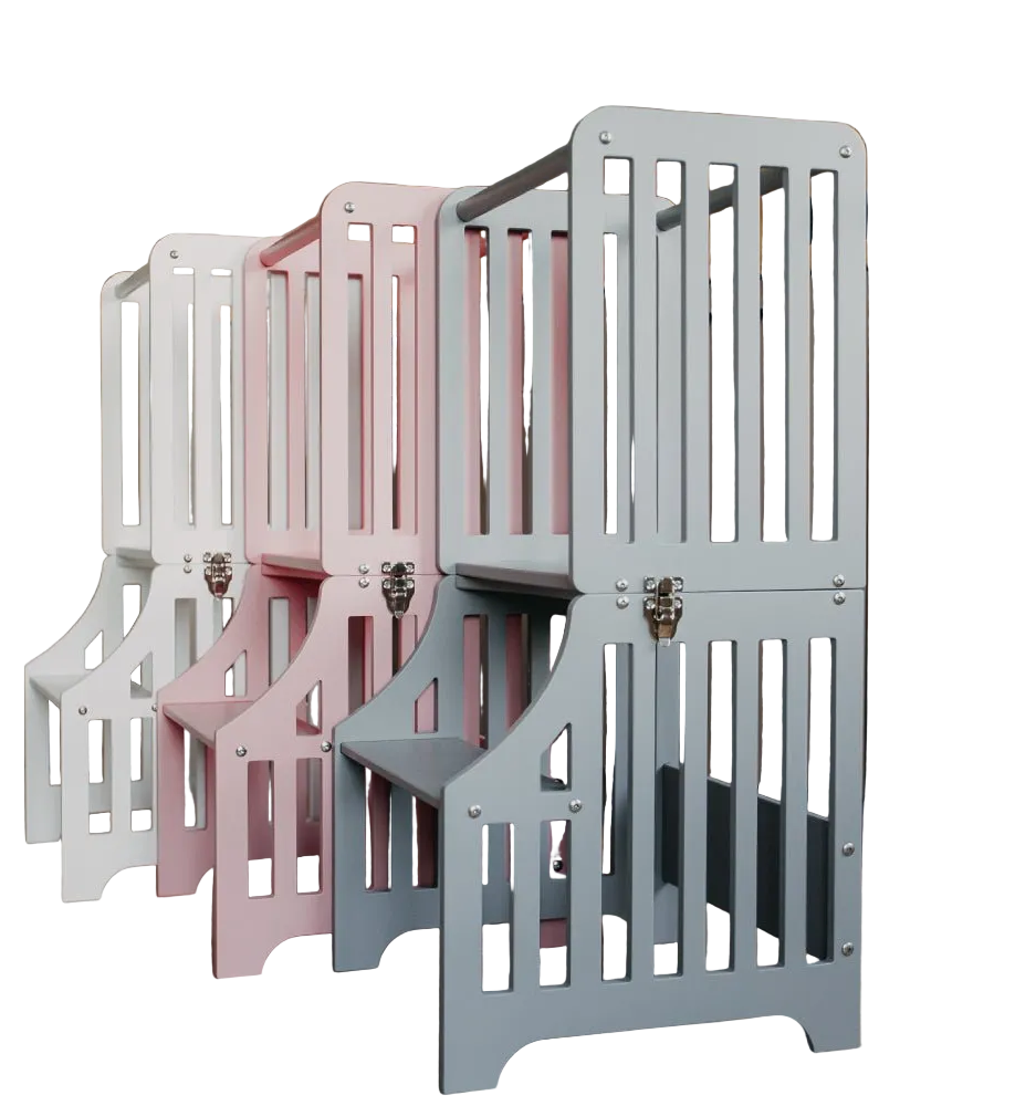Intelligentes Design trifft auf langfristigen Wert. Diese wandelbaren Modelle lassen sich von einem sicheren Küchenturm in einen praktischen Kindertisch oder -stuhl verwandeln. Ein Möbelstück, vielfältige Nutzungsmöglichkeiten – wächst mit Ihrem Kind mit.