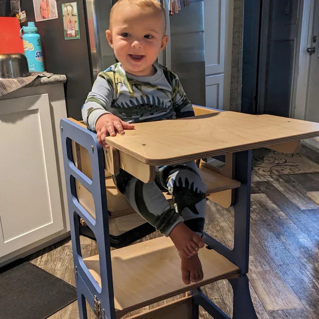 Hochstuhl-Aufsatz für Küchentürme! Genau wie der Turm selbst, revolutioniert er den Alltag Ihres Kindes. Ob beim Essen oder Spielen – dieser Aufsatz vereinfacht Abläufe und fördert die Selbstständigkeit. Er dient gleichzeitig als Schaukel und Tritthocker und vereint so mehrere Funktionen in einem kompakten Möbelstück. Mit dieser innovativen Ergänzung werden Mahlzeiten effizienter und Ihr Kind kann aktiver am Alltag teilnehmen.