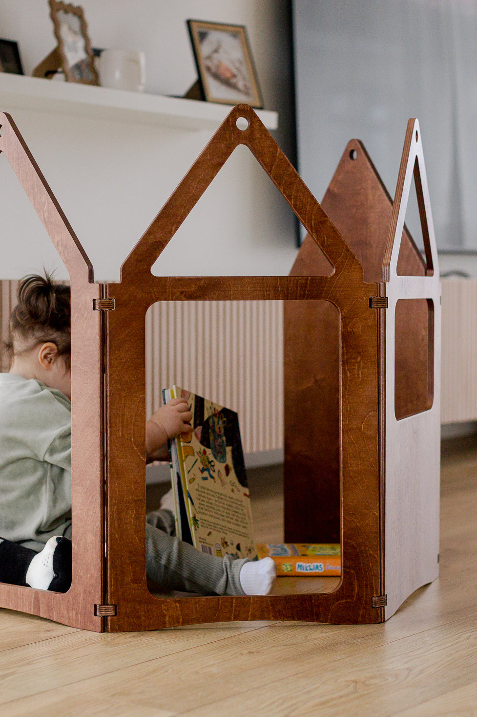 Dieses 5-teilige Holzspielhaus lässt sich in jede beliebige Form zusammenfalten und bietet so endlose Möglichkeiten für fantasievolles Spielen. Mit seinem klaren, modernen Design bietet es eine umweltfreundliche Alternative zu herkömmlichen Spielstrukturen und fügt sich nahtlos in jeden Raum ein. Nach dem Spielen lässt es sich kompakt zusammenfalten und verstauen, sodass das Aufräumen ein Kinderspiel ist. Ob beim Bau einer gemütlichen Deckenburg oder beim Erschaffen einer eigenen Fantasiewelt – das Zig Zag House ist einfach aufzubauen und inspiriert zu endloser Kreativität.